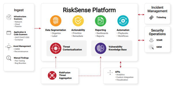 Platforma RiskSense zbiera dane o potencjalnych lukach w infrastrukturze ze skanerów podatności sieci i systemów, skanerów badających poprawność aplikacji czy systemów zarządzania zasobami. Koreluje te dane z informacjami na temat dostępności systemu, ilości oraz roli (krytyczności) dotkniętych systemów, aby przygotować uporządkowaną listę zadań do wykonania.
